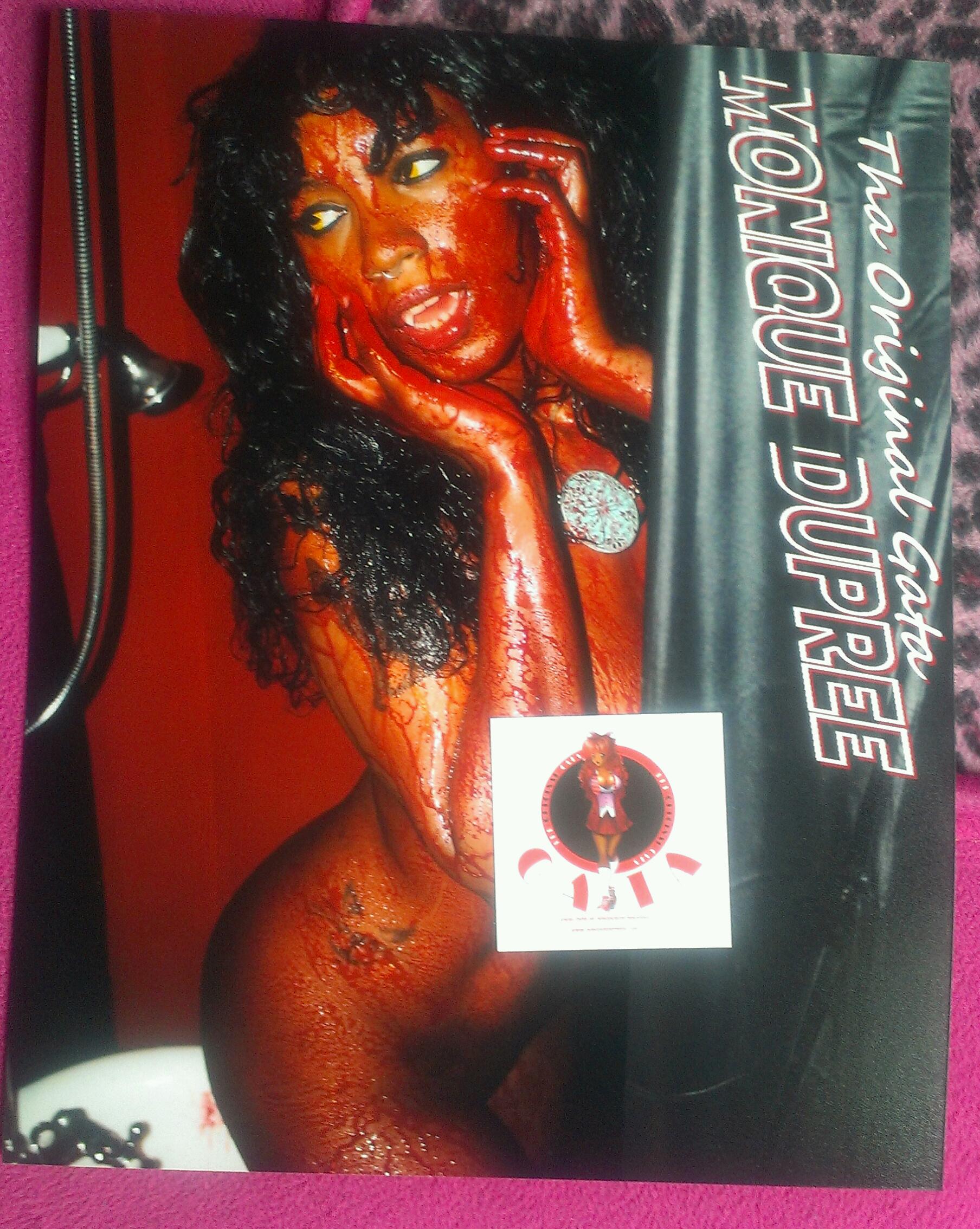 Newark, New Jersey native, Monique Dupree, also known by the title Tha Original Gata and in some circles is referred to affectionately as The First Black Scream Queen. She has done independent horror films, fetish, comic-book, catalog and/or alternative modeling, local and national reality television and an occasional cross-over into mainstream television and cinema. This includes music, by way of her band. publishing, promotion, internet radio, fitness, production and pro-wrestling. Monique is married a mother of 9 children. she is involved in several grass-root charities and social outreach organizations. To date, Monique has completed upward of seventy films and television projects, inspired the creation of several comic-book heroines and consistently works and is for hire across the country and around the world.