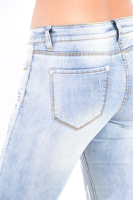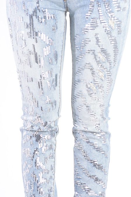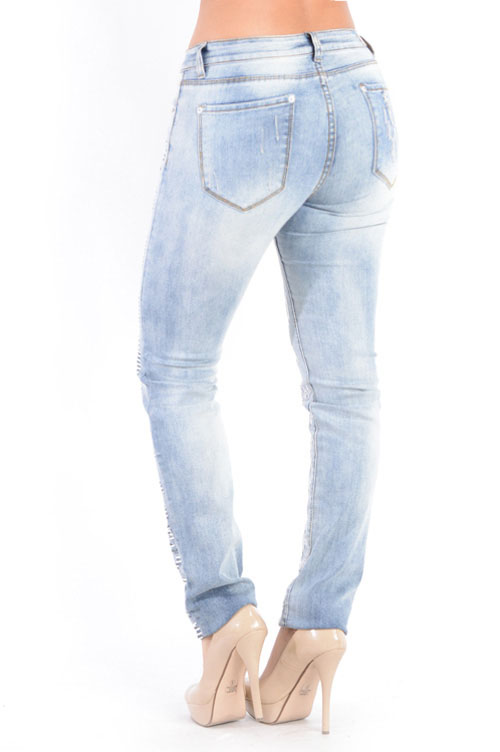 Mid rise, acid wash, skinny jeans with sequences front Desing. Destroyed Style. Strech Fabric. Nice Fit. Butt Lifter Jeans.