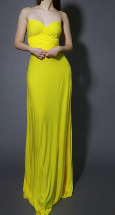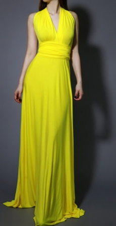 Muti-styling maxi dress soft fabric. Extended fabric tie to create different looks. (Can be worn by 8 OR MORE different styles) Content: 95%Rayon 5%Spandex