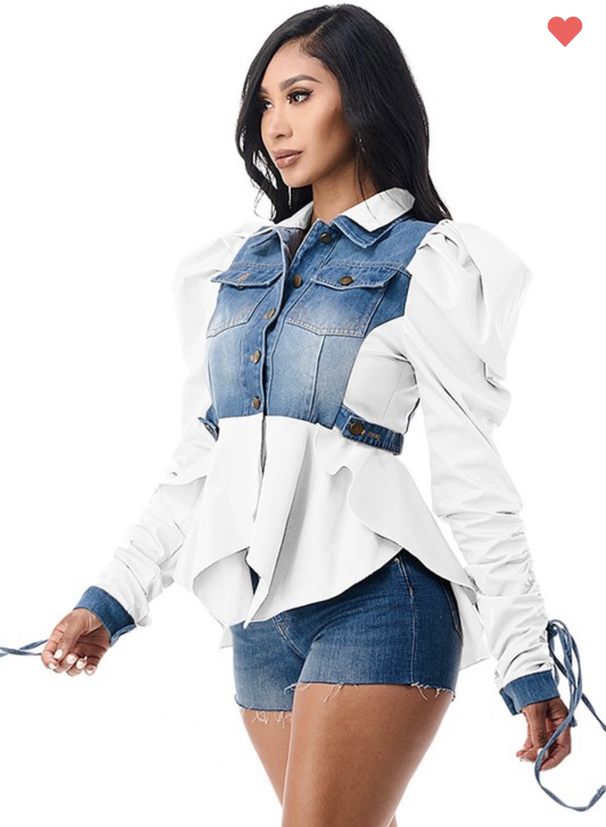 Double collar adjustable tie puff long sleeve jacket/shirt This is an amazing shirt that can be a jacket depending on the weather!! 90% cotton 10% polyester